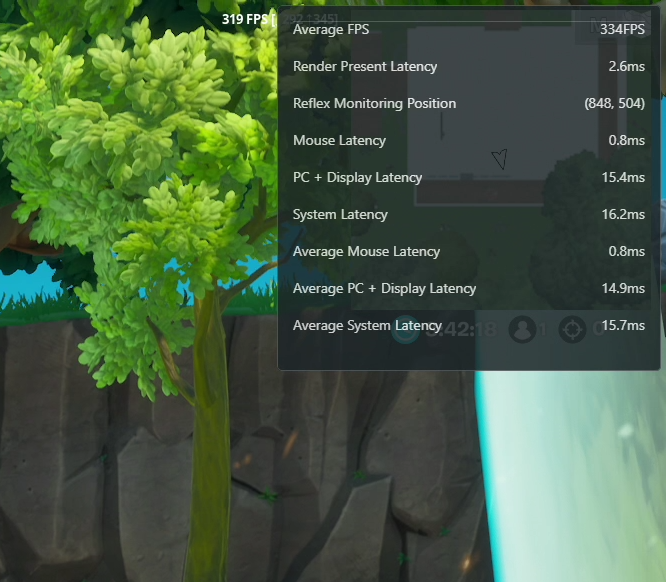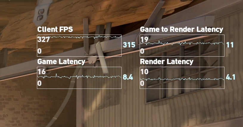 如果您迫切想开始测量延迟,可以在拿到新款 360Hz 显示器之前这样做。只要游戏集成了 NVIDIA Reflex SDK,就能将游戏延迟和渲染延迟指标添加到游戏统计数据中。此测量值并非您感觉到的完整延迟,但可以帮助您着手优化延迟。