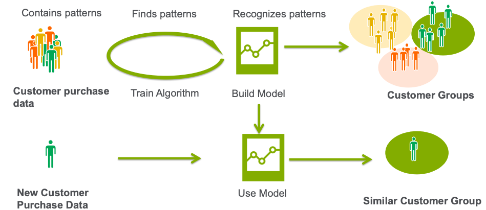 在聚类中,算法通过分析输入示例之间的相似性将输入分为不同类别。聚类的一个示例是,为了更好地定制产品和服务,公司希望对其客户进行细分。客户可以按人口统计数据和购买记录等特征进行分组。为了得到更有价值的结果,通常将无监督式学习聚类与监督式学习聚类相结合。