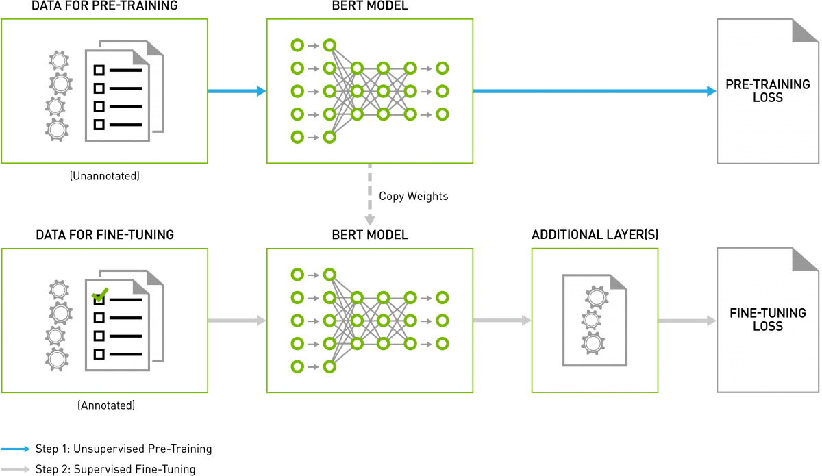 像 BERT 这样基于 NLP Transformer 的深度学习模型不需要按顺序处理连续数据,与 RNN 相比,可以在 GPU 上实现更多的并行化,并减少训练时间。BERT 使用无监督式学习方法的能力、使用预训练模型进行迁移学习的能力,以及使用 GPU 进行加速的能力,均使其在行业中得到广泛应用。